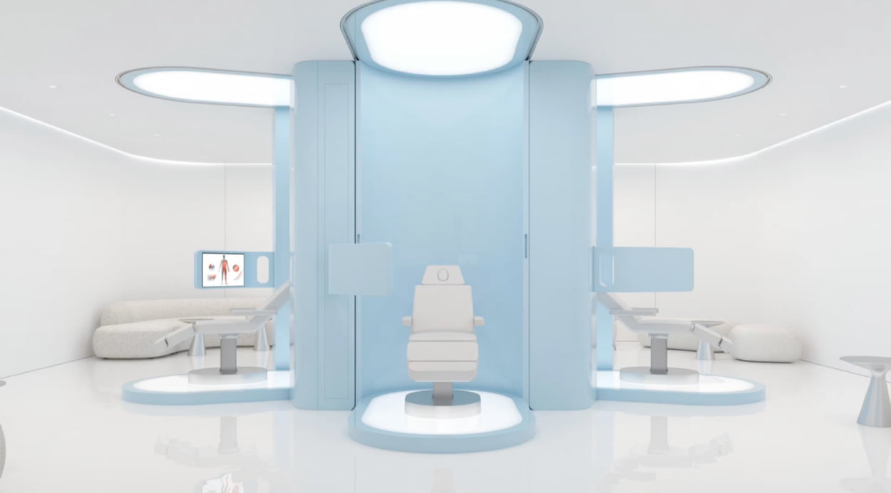 All equipment is integrated into the architecture, so the experience feels like interaction with a technology product rather than a medical room.